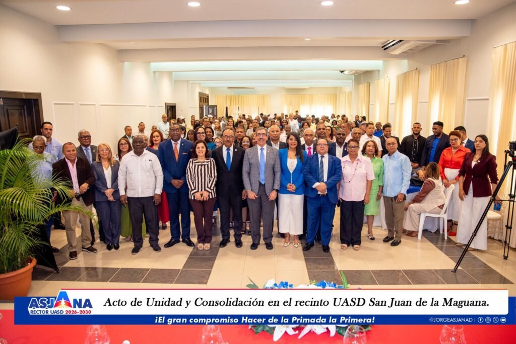 SAN JUAN DE LA MAGUANA. – En una jornada marcada por la unidad, la visión y el compromiso institucional, el doctor Jorge Asjana David, próximo rector de la Universidad Autónoma de Santo Domingo (UASD), encabezó este martes un multitudinario “Acto de Unidad y Consolidación” en el recinto UASD San Juan de la Maguana.