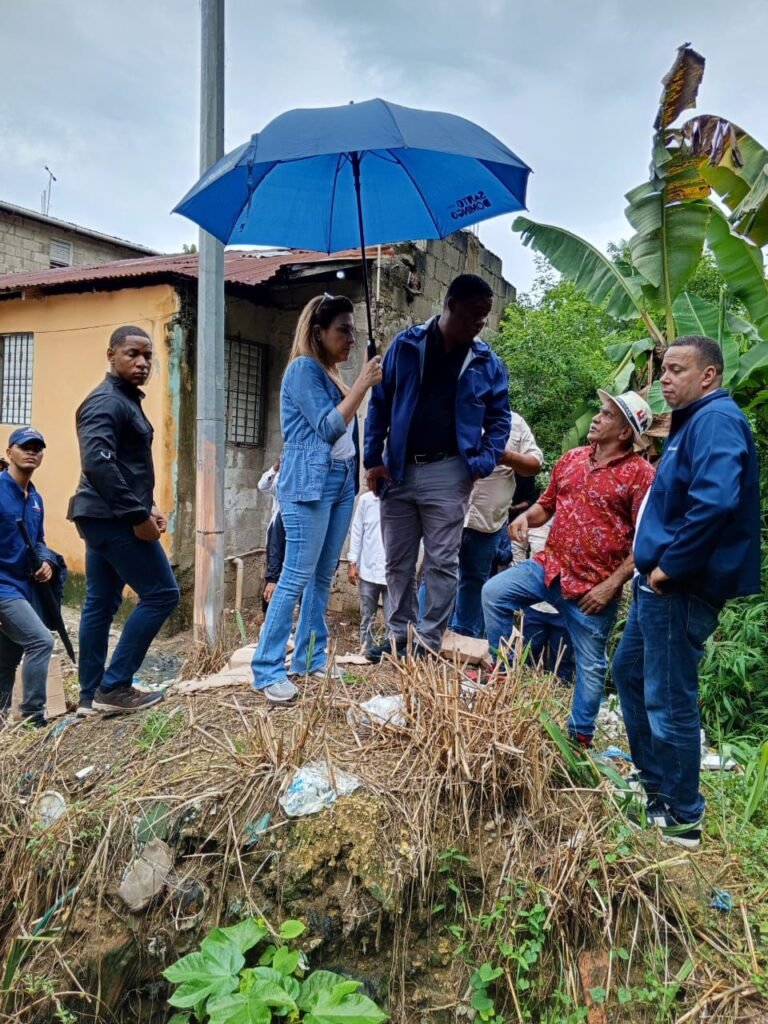 Acompañada del alcalde Francisco Peña, el diputado Félix Encarnación, el dirigente comunitario Deiby Torres, y un amplio equipo de trabajo, Benzán supervisó las zonas vulnerables y entregó ayudas directas a los residentes más afectados.