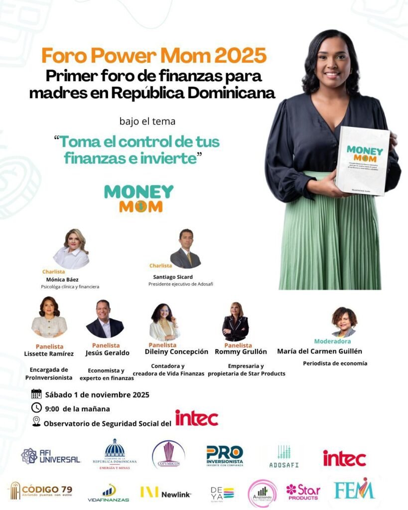 Bajo este lema se anunció el primer foro de finanzas personales para madres en el país, “Power Mom 2025”, a celebrarse el sábado 1 de noviembre en el Observatorio de Seguridad Social del INTEC, organizado por la periodista económica Massiel de Jesús Acosta, autora de la guía Money Mom.